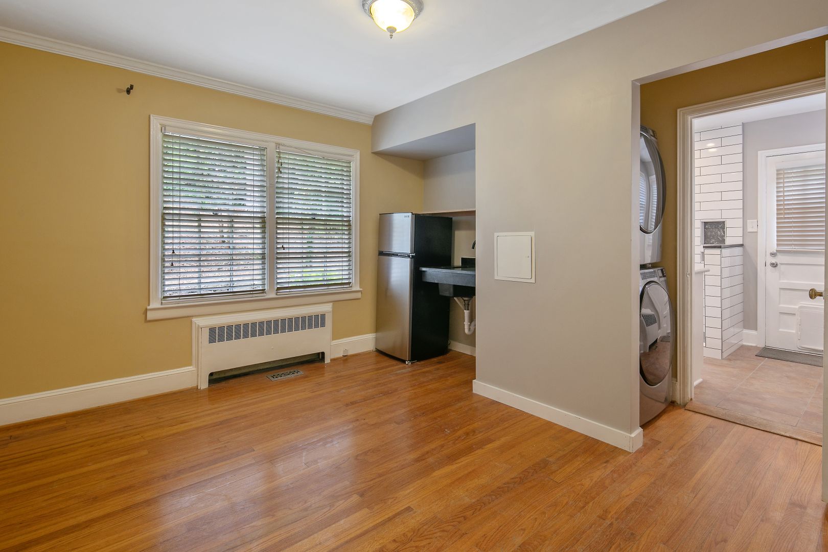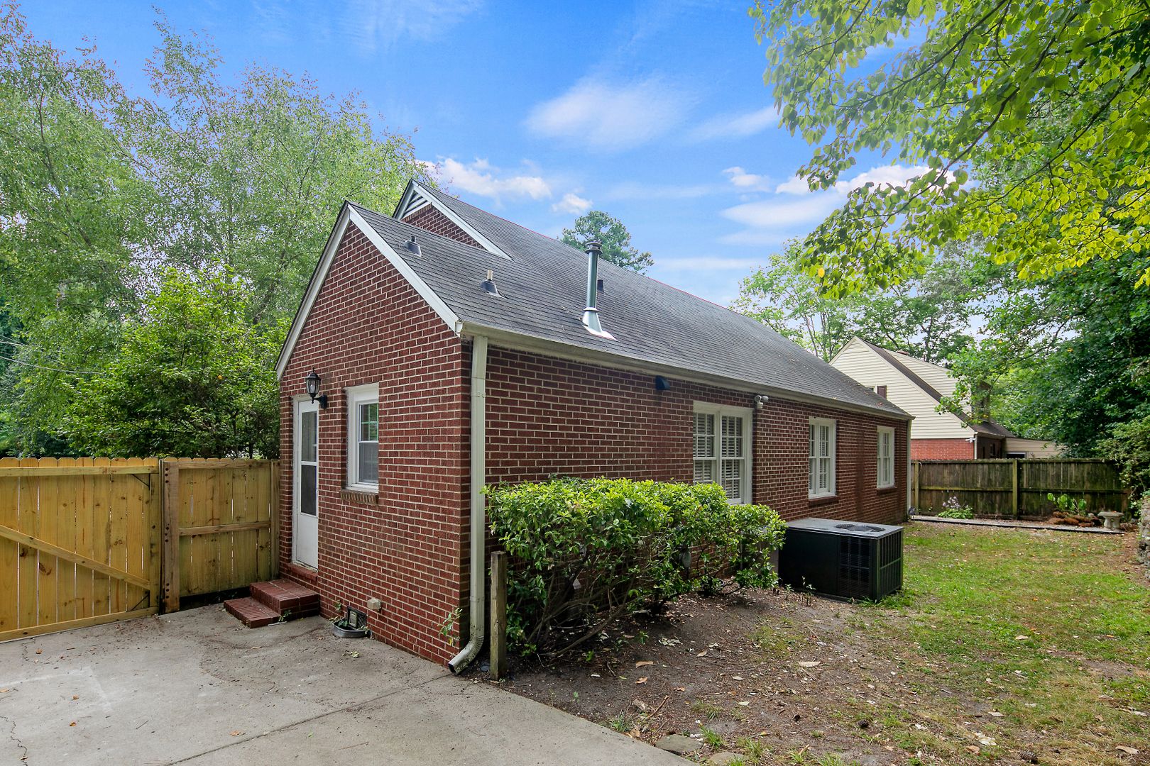 Welcome to this charming 4 bedroom, 3 bathroom story and a half home located in the desirable Haymount neighborhood of Fayetteville, NC just 1 mile from Segra Stadium. As you enter through the covered entrance, you will be greeted by the character and warmth of the hardwood flooring and wood burning fireplace in the living room. The living room also features a Smart TV mounted above the fireplace and access to the side screened in porch. The formal dining room is perfect for hosting gatherings, while the kitchen boasts a double farm house sink, stainless appliances, tile back splash, granite countertops, and a gas range. One of the downstairs bedrooms includes a wet bar and a private bath with a custom tiled shower as well as access to the exterior of the home. Upstairs, the primary bedroom features a claw foot tub and a large shower with double shower heads. Additional features include a gas forced warm air system for heating ¢tral A/C, a stacked front load washer & dryer, unfinished/crawlspace basement for storage, lots of closets, a storage shed, and a fenced back yard for outdoor enjoyment. Don't miss out on this unique opportunity to experience living in Haymount charm.