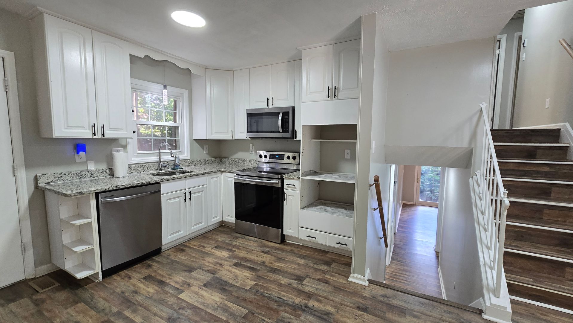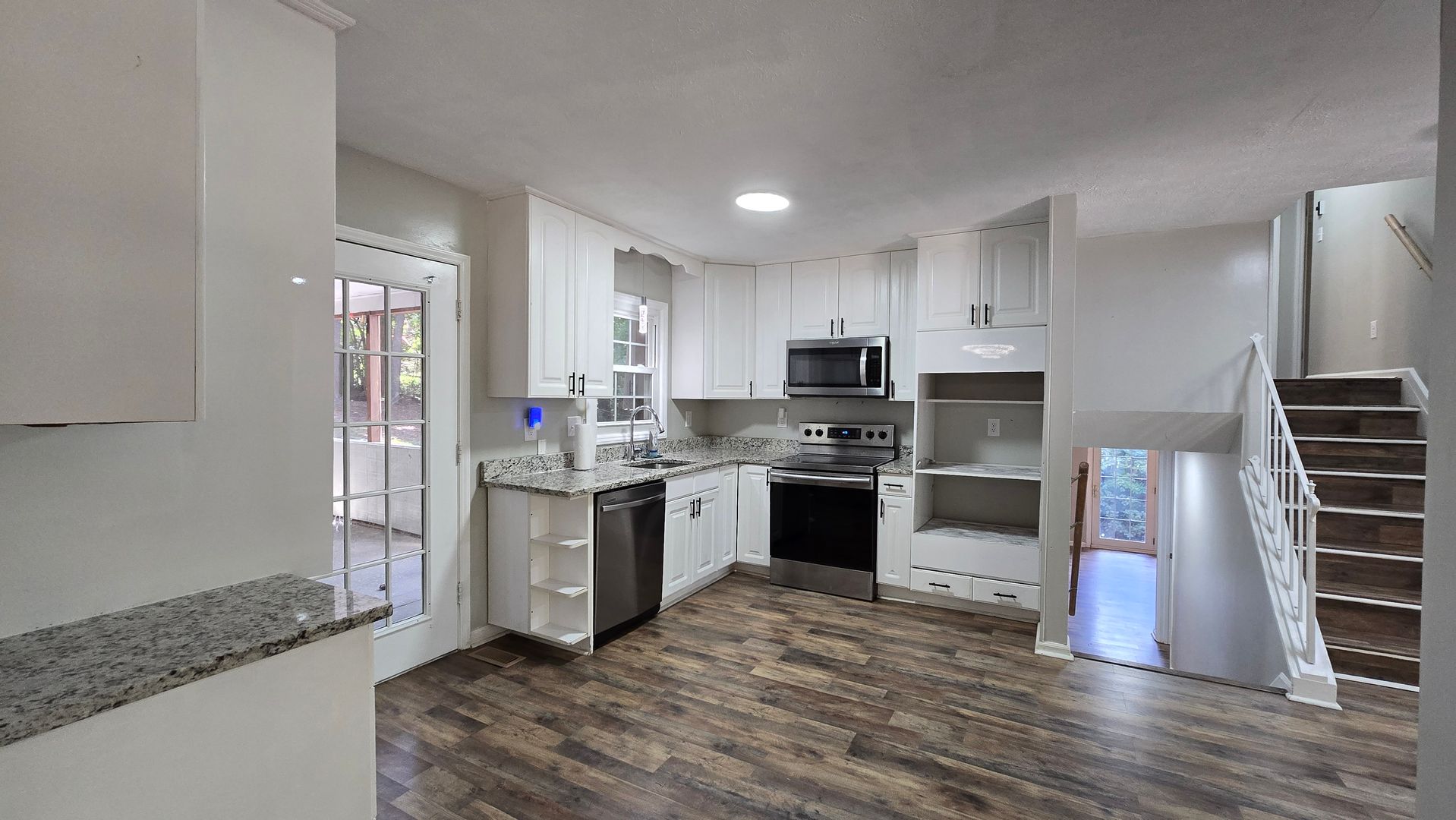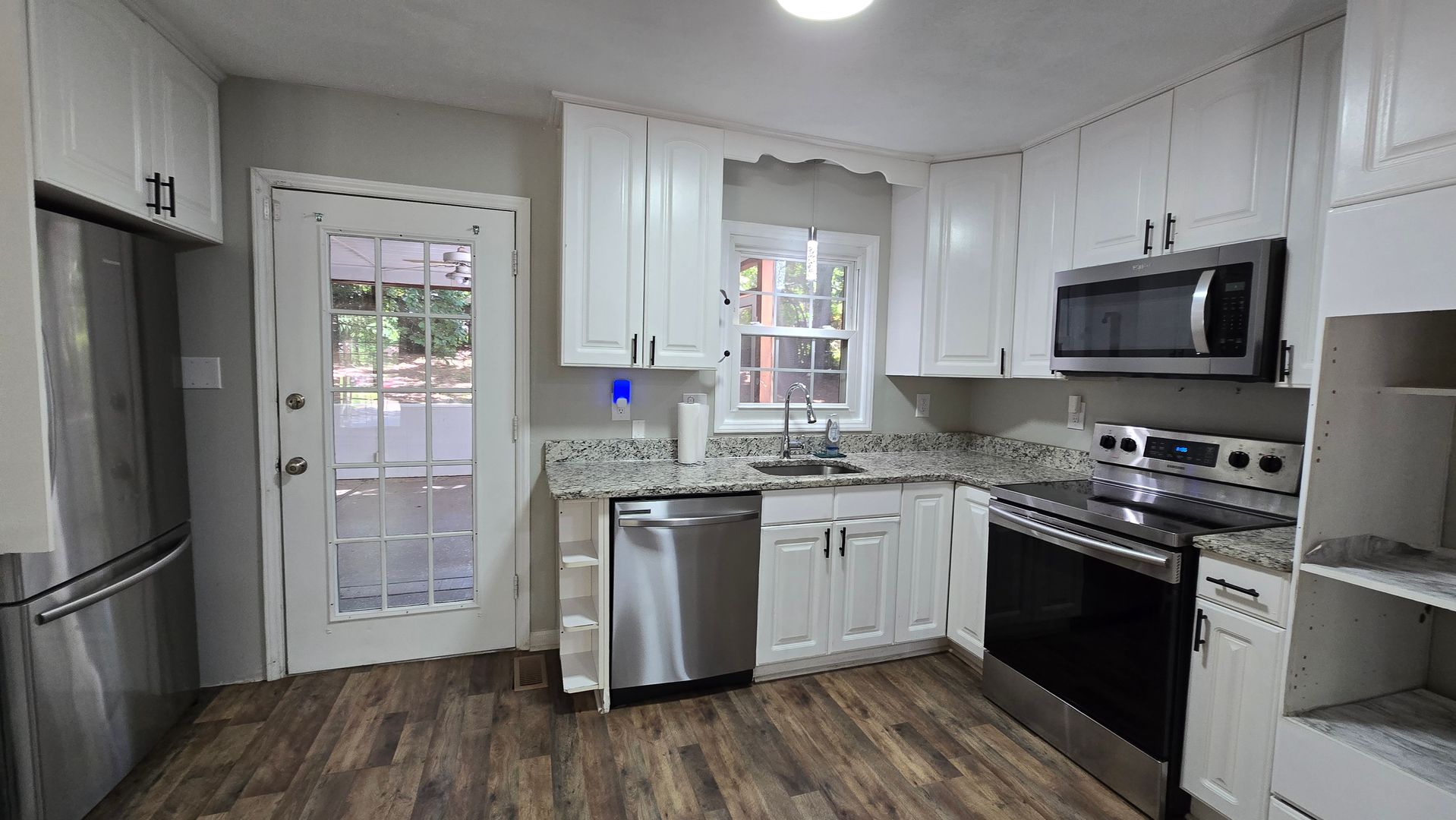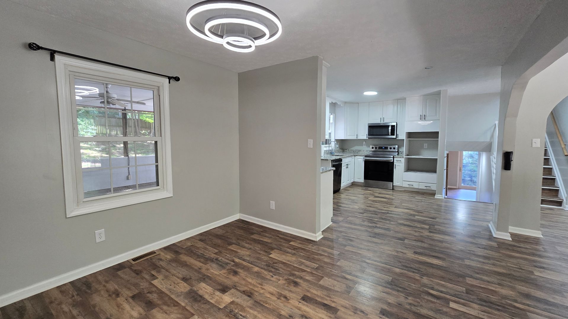 Welcome to this stunning 4-bedroom, 3-bathroom tri-level home located in Devonwood. You will find luxury vinyl plank flooring throughout most of the home. On the main level, a welcoming foyer leads to the living room, dining room and kitchen. The kitchen is a chef's dream with granite countertops and stainless appliances. Downstairs you will find a den with side patio access, the 4th bedroom, a full bath and a large laundry room with W/D hookups. The primary suite along with the other two secondary bedrooms and a full bath are located upstairs. The screened in back porch and fenced back yard provide additional spaces for relaxation and entertainment.