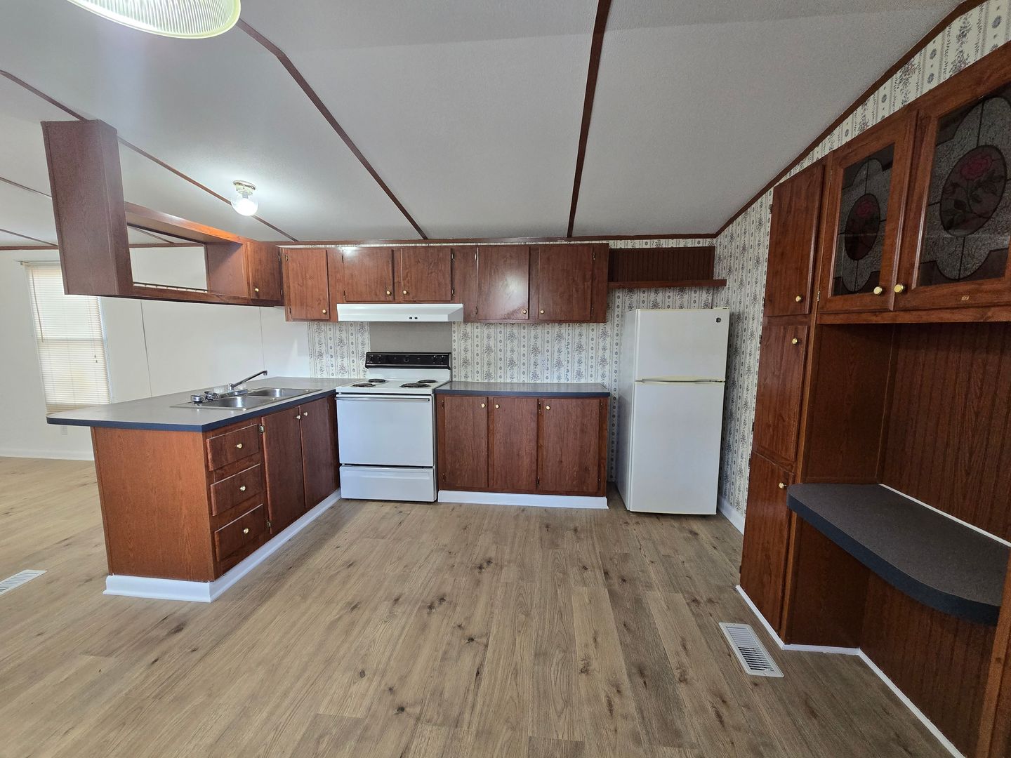 Welcome to this charming 2-bedroom, 2-bathroom home located in the serene town of Bunnlevel, NC. This home boasts a range of amenities designed for comfortable living. The kitchen, equipped with a refrigerator and range, is spacious enough for dining in. The living room, adorned with laminate flooring, provides a cozy space for relaxation. The home also features storm doors for added protection and durability. The bedrooms are carpeted, adding a touch of warmth and comfort. The bathrooms are a highlight, with one featuring a garden tub and separate shower for a spa-like experience. The home is equipped with a heat pump for heating and central A/C, ensuring a comfortable environment all year round. For added safety, smoke alarms are installed throughout the home. Additionally, the convenience of washer/dryer hookups is provided. This home is a perfect blend of comfort and functionality.