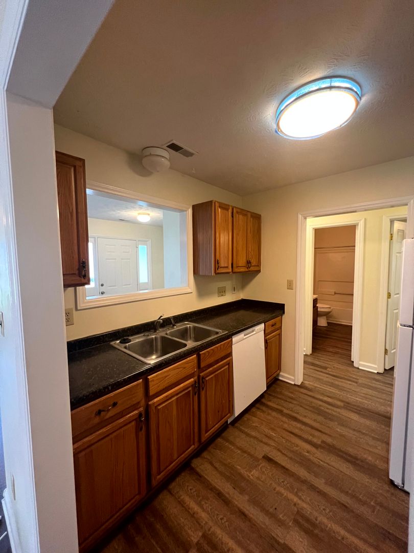 Welcome to 2154 Skyview ~ Quail Lakes, a charming 3-bedroom, 2-bathroom home located in the vibrant city of Fayetteville, NC. This home boasts a range of modern amenities designed for comfortable living. The kitchen is equipped with a refrigerator, dishwasher, and microwave, making meal preparation a breeze. The living room features a cozy fireplace, perfect for those cooler evenings. Each room is fitted with ceiling fans for added comfort, and the home is serviced by a central a/c and heat pump, ensuring a pleasant environment all year round. The primary bedroom features a walk-in closet, providing ample storage space. Additional features include W/D hookups for your laundry needs and a welcoming foyer that adds a touch of elegance. The property also offers a partially privacy-fenced backyard, perfect for outdoor relaxation. Experience the perfect blend of comfort and convenience at 2154 Skyview ~ Quail Lakes.