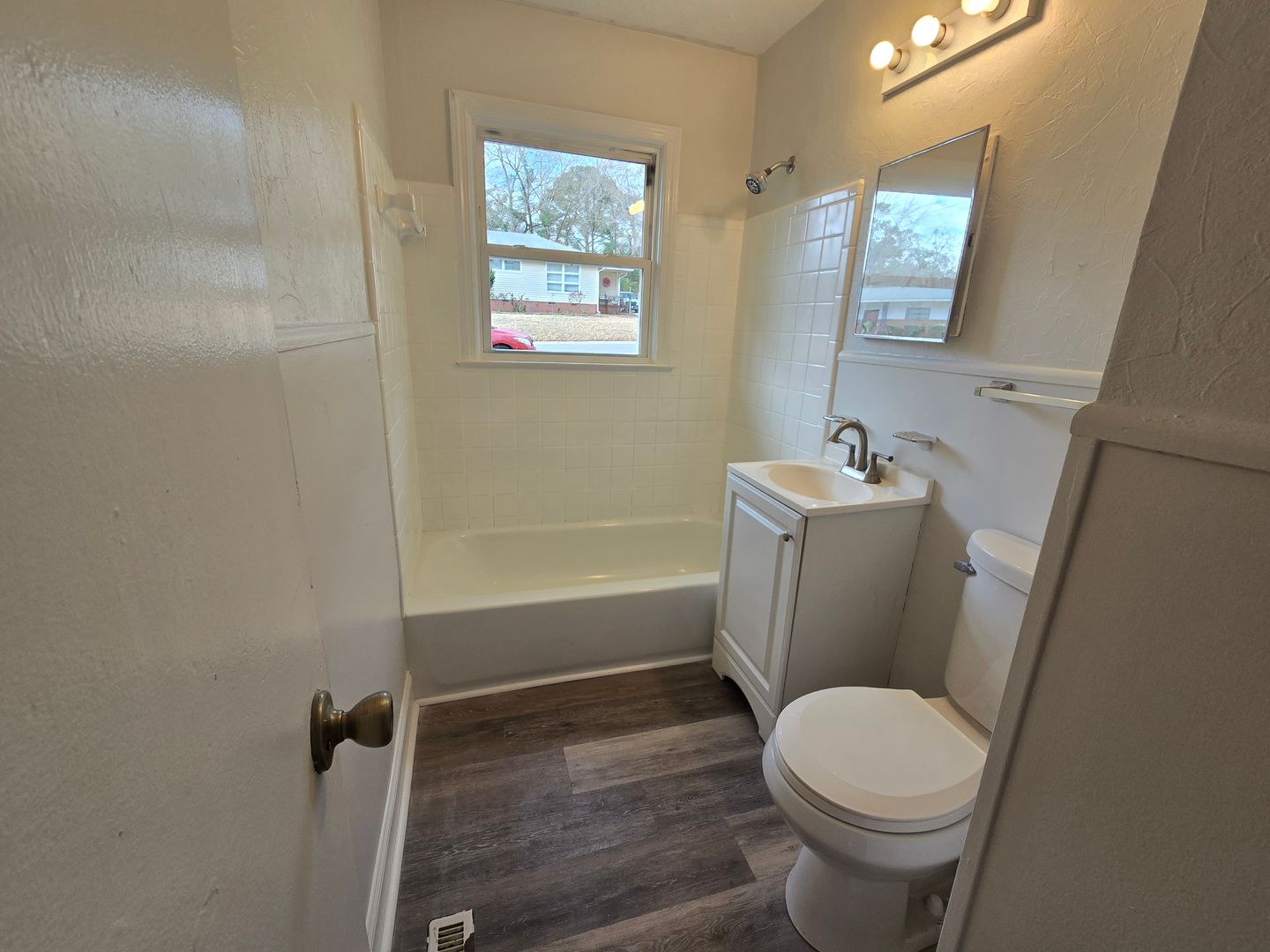 Welcome to this charming 3-bedroom, 2-bathroom home located in the vibrant city of Fayetteville, NC. This home boasts a range of modern amenities including a refrigerator, ceiling fans, and a heat pump for heating and central A/C, ensuring your comfort in all seasons. The house features a spacious eat-in kitchen equipped with a range and cooktop, perfect for those who love to cook. The living room is a great space for relaxation and entertainment. The primary bedroom comes with a walk-in closet, providing ample storage space. The house has been recently updated with new paint and laminate flooring, adding a fresh and contemporary feel. A laundry room with a washer/dryer included adds convenience to your daily routine. Outside, you'll find a deck and a partially fenced backyard with a chain link fence, offering a great space for outdoor activities. The house also provides some interior wheelchair accessibility features. Smoke alarms are installed for your safety. Experience comfortable and accessible living in this lovely Fayetteville home.