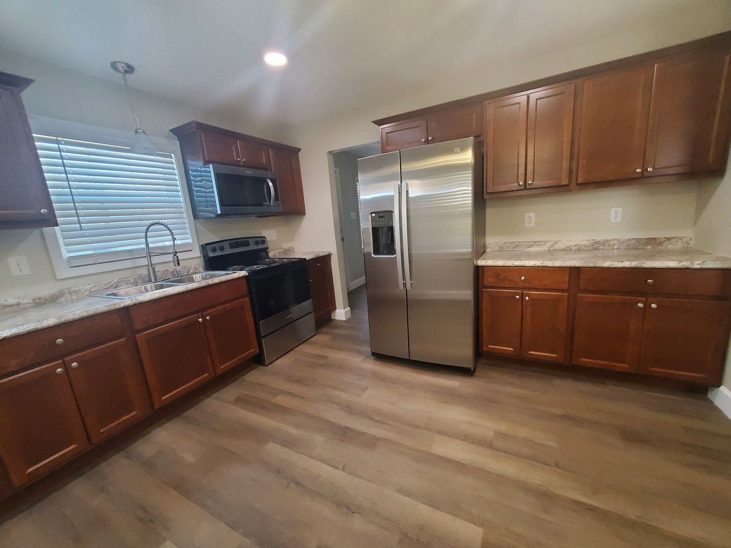 Check out this 3 bedroom, 1.5 bathroom home located less than 1 mile from Fayetteville State University. This home features a covered front porch that opens into the living room. The eat-in kitchen is equipped with stainless appliances such as a range, refrigerator, disposal, and microwave. The back yard is fenced in. The home has luxury vinyl plank flooring throughout, central AC, ceiling fans, washer and dryer hookups, and a single car carport with an attached storage building.