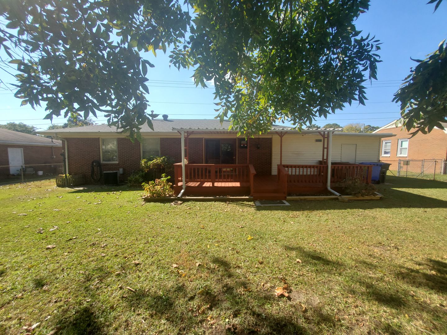 Welcome to this charming 3-bedroom, 2-bathroom home located in the vibrant city of Fayetteville, NC. This home boasts a variety of amenities designed for comfort and convenience. The living/dining room is spacious and inviting, perfect for entertaining or relaxing. The home is equipped with a heat pump for heating and central A/C, ensuring year-round comfort. The partially fenced backyard with a chain link fence offers a secure outdoor space for recreation. The home also features a covered deck and a covered front porch, providing additional outdoor living spaces. Inside, you'll find a mix of carpet, vinyl, and hardwood flooring, adding to the home's charm and appeal. The primary bathroom includes a walk-in shower for added convenience. The home also includes a large, wired, detached shed for extra storage, an outside laundry room, and ceiling fans in various rooms. Safety features include smoke alarms and a storm door. This home is a perfect blend of comfort, convenience, and safety.