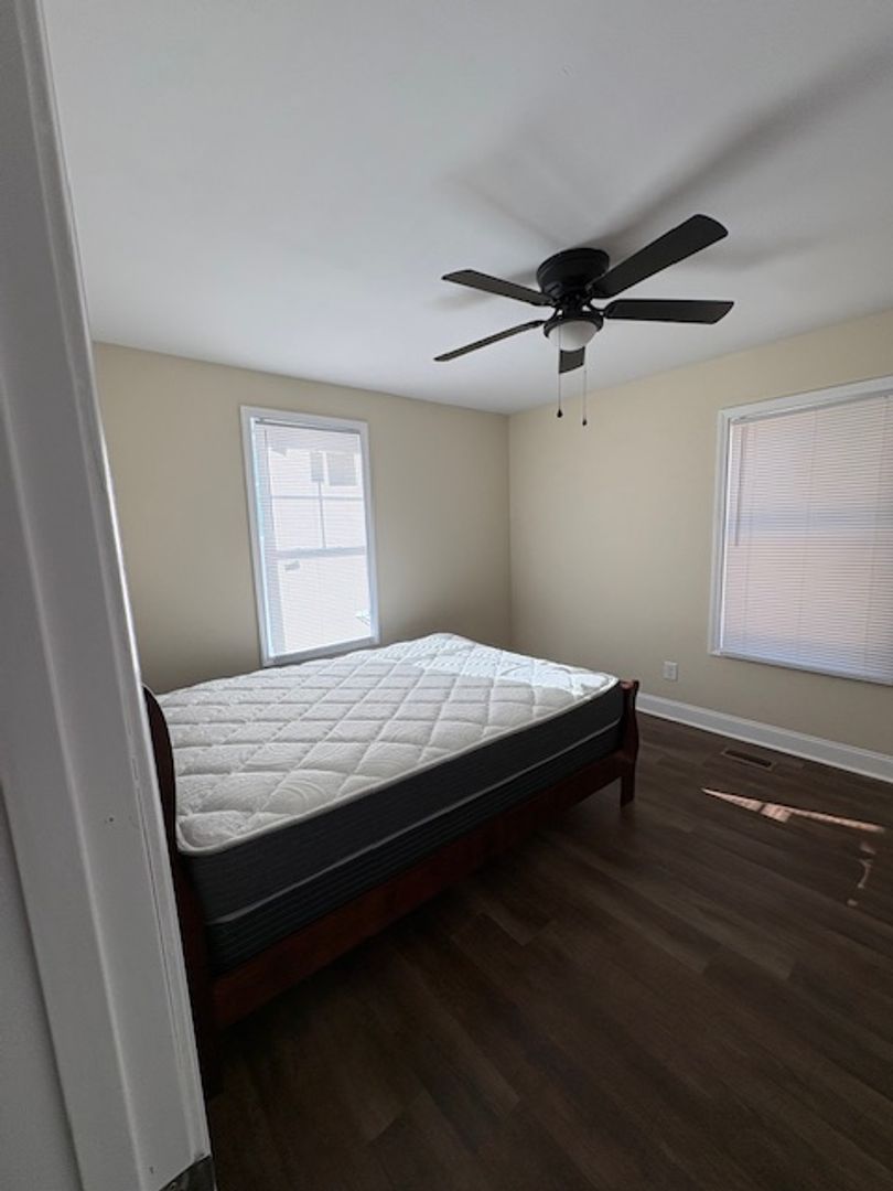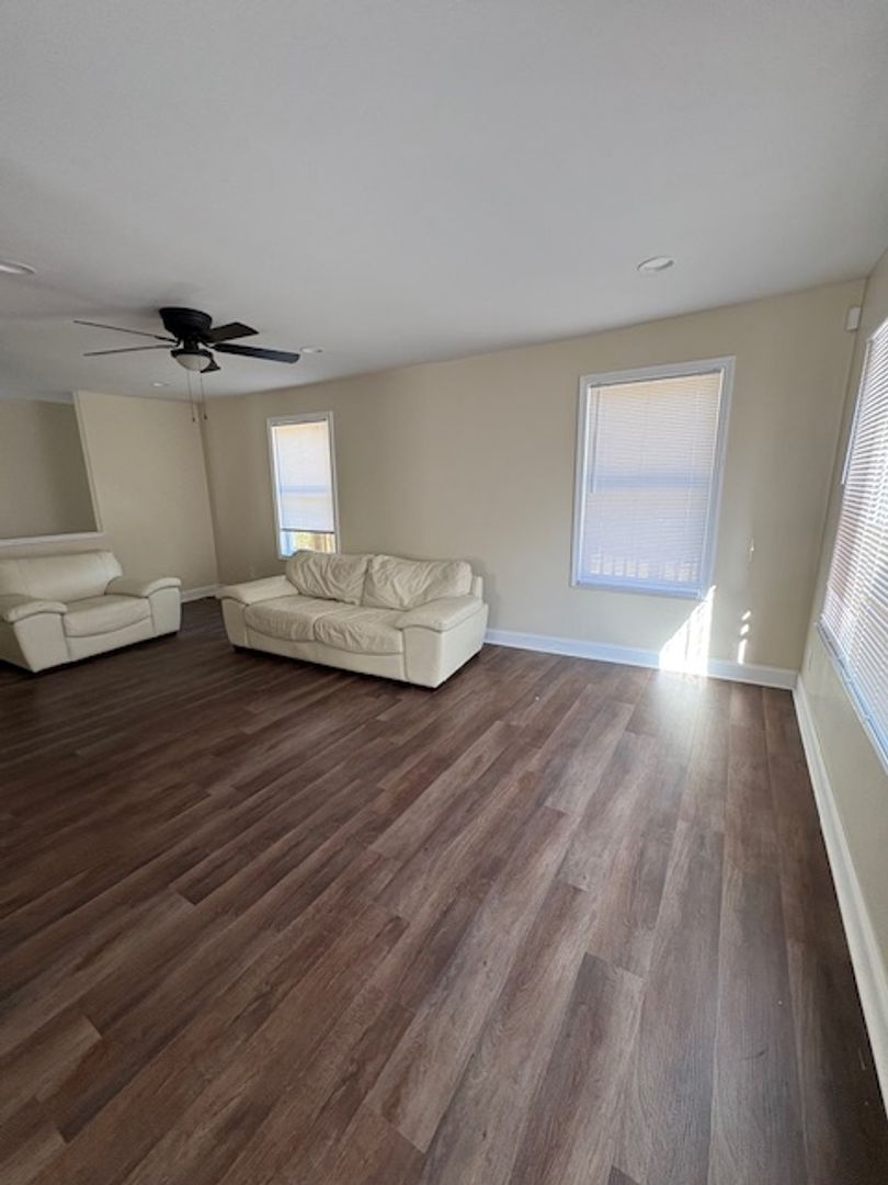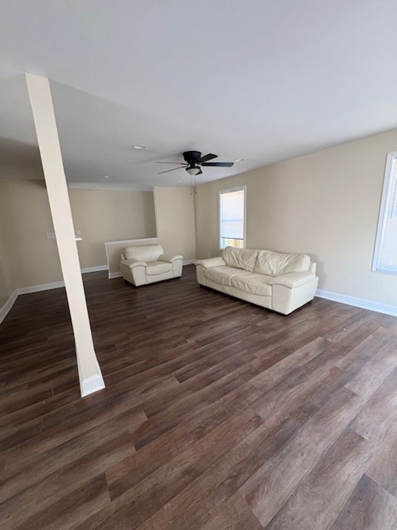 Welcome to this stunning newly renovated 2-bedroom, 1.5-bathroom home centrally located in Fayetteville, NC. This partially furnished home has new interior paint and new luxury vinyl plank flooring that flows throughout. A welcoming foyer leads to the living room. The kitchen is a chef's dream, complete with an island and new stainless steel appliances including a range, fridge and microwave. This property boasts a range of amenities, including ceiling fans, a heat pump for heating ¢tral A/C and some window treatments. The exterior is just as impressive with a covered front porch and deck, perfect for enjoying a morning coffee or an evening breeze. This property also includes a single detached garage for parking or extra storage. The home is a perfect blend of comfort and modern living.