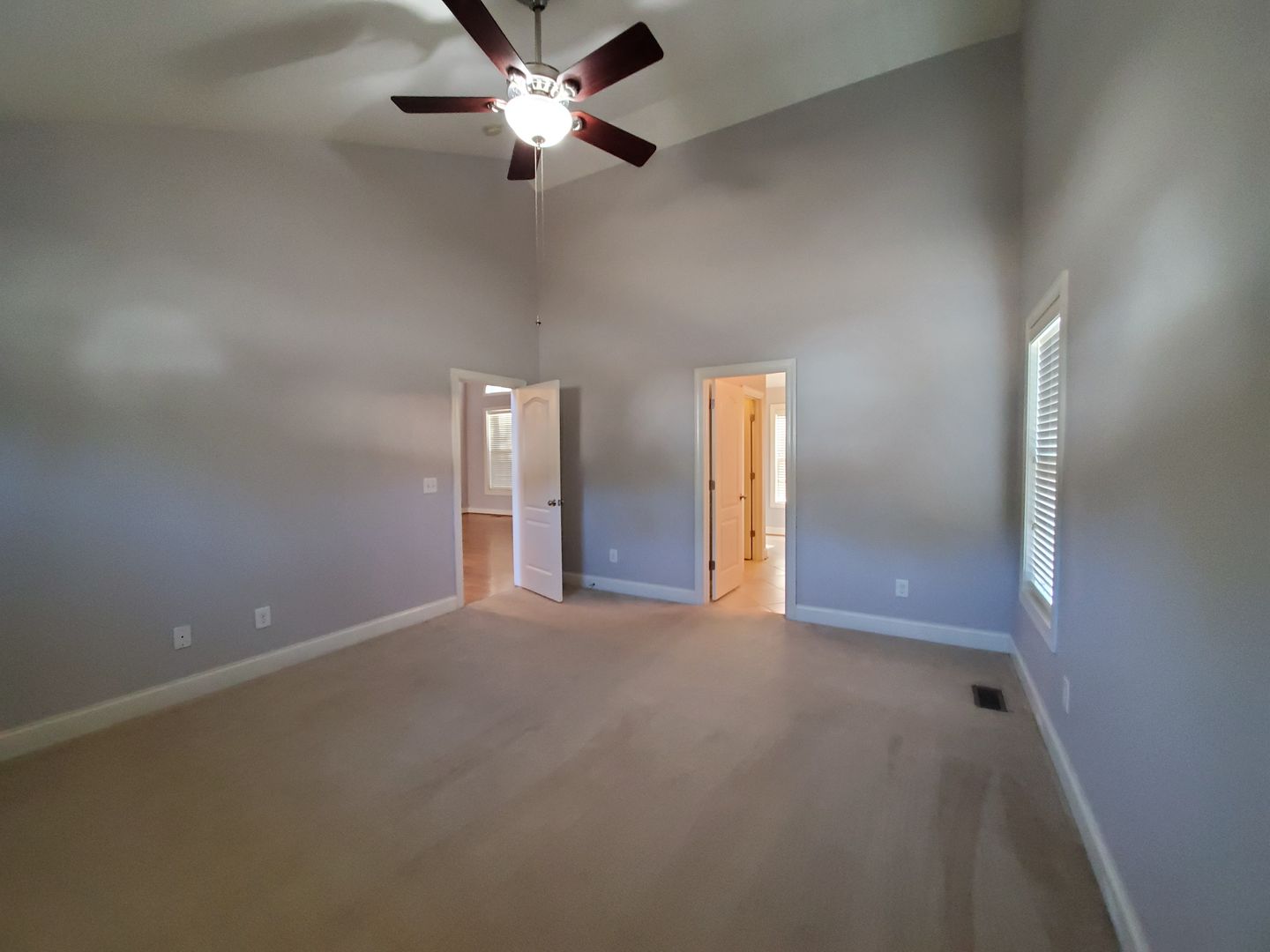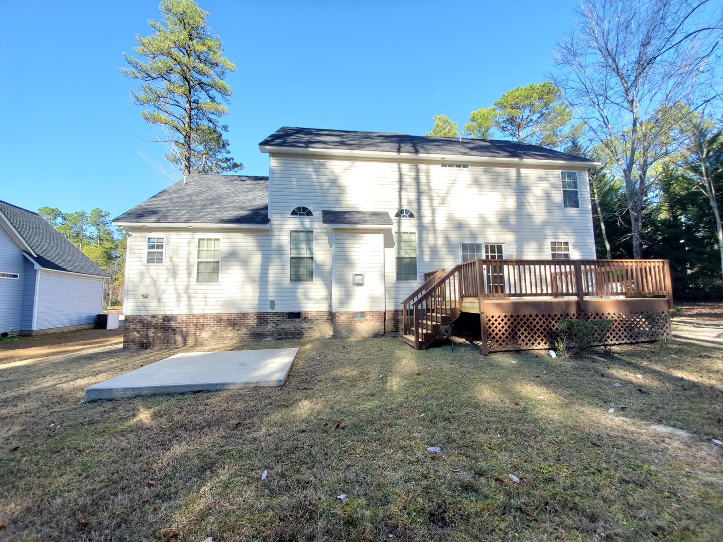 Welcome to 75 Grayson Place in the beautiful Carolina Lakes community in Sanford, NC. This stunning 4-bedroom, 2.5-bathroom home is nestled in a gated golf/lake community, offering you a serene living environment. As you step inside, you'll be greeted by the elegance of hardwood floors throughout the living areas, creating a warm and inviting atmosphere. The foyer boast built in shelving and opens to the formal dining room and great room. The formal dining room is perfect for hosting dinner parties and creating lasting memories with loved ones. The great room boasts a magnificent 2-story ceiling, filling the space with natural light and providing a grand ambiance. The kitchen is a chef's dream, featuring stainless appliances-including a gas range, breakfast nook, a pantry and an island that provides ample space for meal preparation and entertaining. Enjoy your morning coffee on the covered front porch, or relax and unwind on the large back deck, perfect for outdoor gatherings. The downstairs primary suite offers privacy and convenience. Indulge in a spa-like experience in the jetted tub, or enjoy a refreshing shower in the separate shower stall. The wrought iron fenced back yard ensures a safe space for your furry friends to roam. With large closets throughout, you'll have plenty of storage space for all your belongings. Cozy up by the fireplace during the colder months, creating a cozy and inviting atmosphere. The home also includes a two zone heat pump for heating ¢tral a/c, carpeting in the bedrooms and a laundry room with washer & dryer hookups. This home truly has it all, combining comfort, style, and functionality. Don't miss out on the opportunity to make 75 Grayson Place your new home in the Carolina Lakes community.