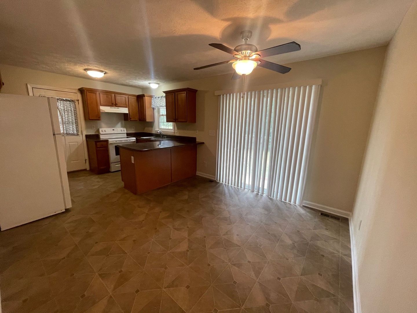 Welcome to 5039 Coker, a charming residence nestled in the desirable West Area Heights of Fayetteville, NC. This home boasts three spacious bedrooms and two full bathrooms, perfect for comfortable living. The heart of the home, the eat-in kitchen, comes equipped with a range and refrigerator, offering a convenient space for meal preparation and dining. The property also features W/D hookups for your laundry needs. The den provides an additional space for relaxation or entertainment. Step outside to a fenced backyard, a perfect spot for outdoor activities or simply enjoying the North Carolina weather. The home is fitted with central A/C and a gas forced warm air system, ensuring your comfort throughout the year. Experience the blend of functionality and comfort at 5039 Coker.