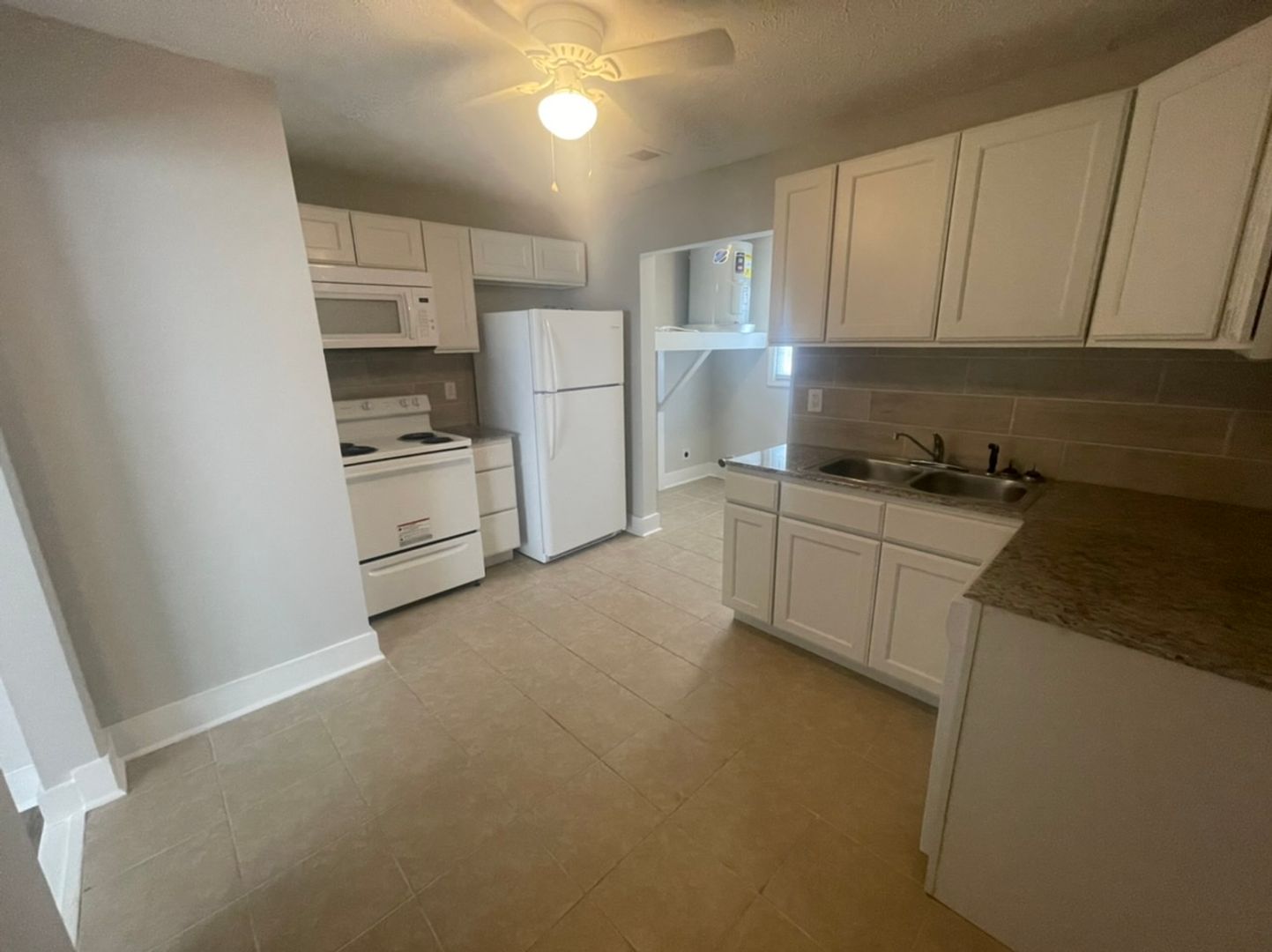 Welcome to 1919-D Ft.Bragg Rd, a stunning 1-bedroom, 1-bathroom apartment located in the Haymount area of Fayetteville, NC. The is unit has luxury vinyl plank flooring and ceramic flooring, adding a touch of elegance to the space. This 2nd floor unit boasts a living room, perfect for relaxation or entertaining. The kitchen is equipped with a dishwasher, range, refrigerator, and microwave. It also features granite countertops and a stylish tile backsplash. For your convenience, the unit includes a laundry room with washer and dryer hookups. The heat pump ensures efficient heating, while the central A/C keeps the home cool during warmer months. The covered front entrance adds a welcoming touch, and the shared back balcony offers a great space for outdoor enjoyment. Located near FTCC, this apartment is convenient to both Ft. Bragg and Downtown Fayetteville.