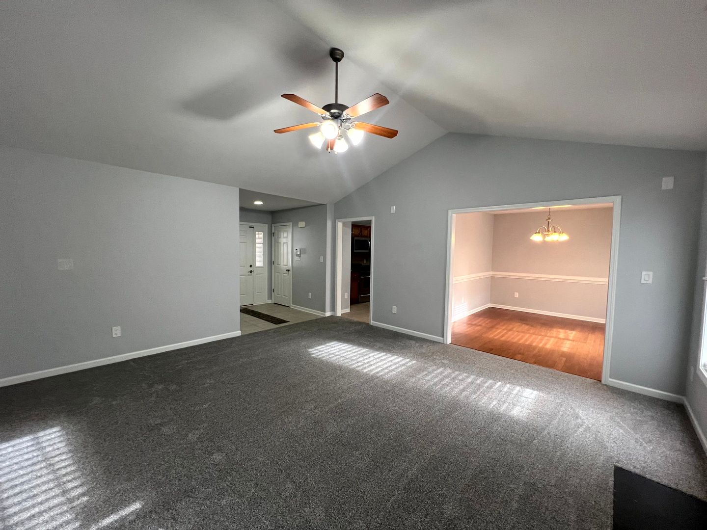 Welcome to 2839 Aristocrat Lane in Peartree. This stunning 3-bedroom, 2-bathroom home is a perfect blend of style and comfort. The great room, with its vaulted ceilings and gas log fireplace offers a spacious area for relaxation or entertaining. The formal dining room, adorned with hardwoods, sets the stage for memorable dinners. Featuring stainless appliances such as a range, dishwasher, refrigerator and microwave, the kitchen with its breakfast nook, is perfect for morning meals. The primary suite is a true retreat, featuring trey ceilings and a luxurious bathroom with a garden tub and separate shower. The house also comes with a finished bonus room that could be used at a 4th bedroom, security system (tenant responsibility), a two-zone heat pump for heating and central A/C, a double garage, storm doors, and insulated windows. Additional features include large closets, plush carpeting, ceramic tile flooring, washer & dryer hookups, a screened-in back porch and back patio. This home truly offers a unique living experience.