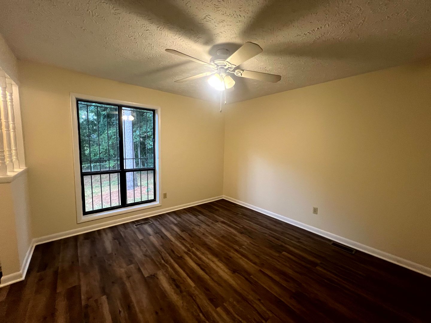 Welcome to 417 Nottingham Drive - College Lakes, a charming 3-bedroom, 2-bathroom home located in the vibrant city of Fayetteville, NC. This home boasts a range of amenities designed for comfortable living. The cozy fireplace sets the tone for relaxing evenings, while the eat-in kitchen, complete with a refrigerator and range, is perfect for home-cooked meals. The house also features ceiling fans, W/D hookups, and a heat pump for your convenience. The primary bedroom comes with a walk-in closet, offering ample storage space. Step outside to a covered front porch and a deck overlooking a privacy-fenced backyard, ideal for outdoor enjoyment. The house also comes with a security system for added peace of mind (tenant responsibility). With central A/C to keep you cool during the summer months, this home truly caters to all your needs. Experience the perfect blend of comfort and convenience at 417 Nottingham Drive - College Lakes.