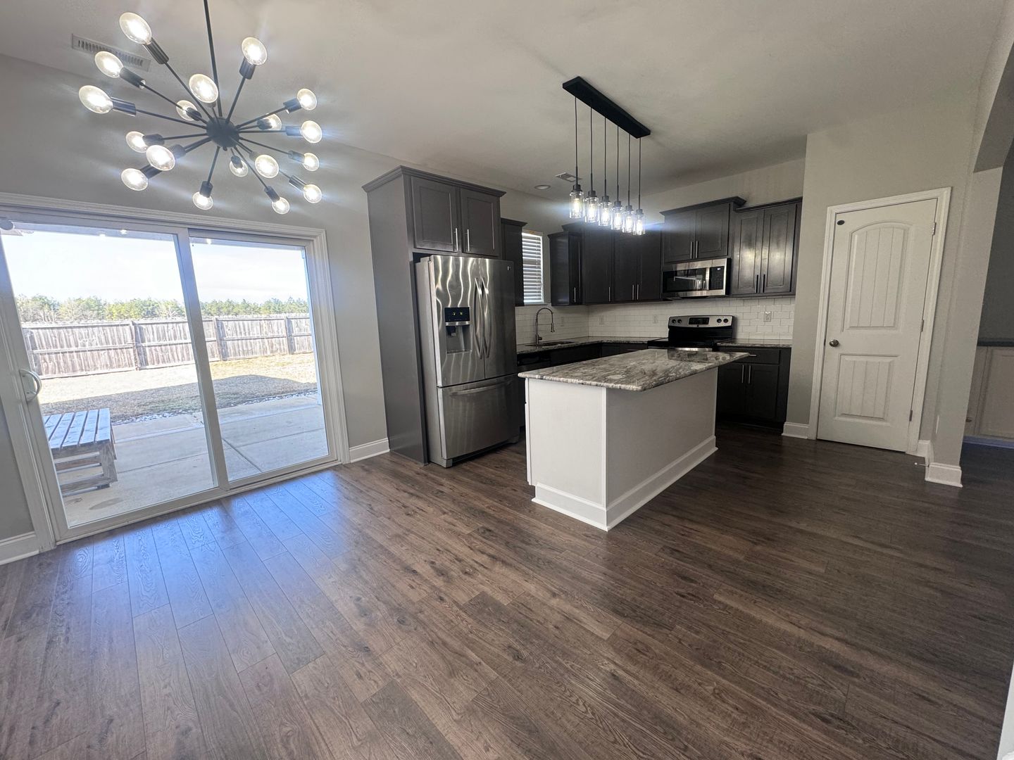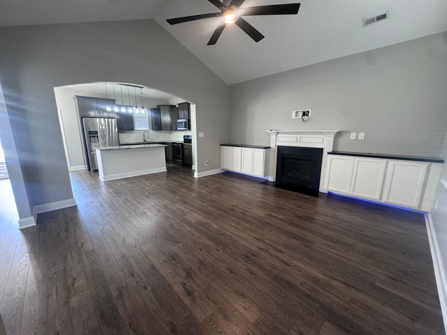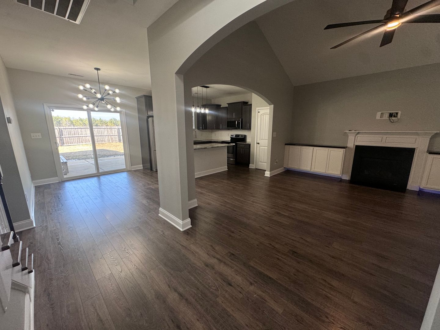 Welcome to this stunning two-story home located in the vibrant city of Fayetteville, NC. This property boasts four spacious bedrooms and two full bathrooms, perfect for comfortable living. The home is equipped with a range of modern amenities including a refrigerator, dishwasher, microwave, and all stainless appliances. The living room is a cozy retreat with a gas log fireplace and built-in shelving with lighting, creating a warm and inviting atmosphere. The eat-in kitchen features a pantry and ample space for meal preparation. The home also offers a heat pump for heating and central A/C, ensuring your comfort in all seasons. The flooring is a mix of carpet, vinyl, and LVP, adding to the home's charm. The exterior of the home is just as impressive with a covered front porch, a covered patio, and a privacy fenced backyard, perfect for outdoor relaxation or entertaining. An attached double garage provides convenient parking and storage. This home also includes w/d hookups for your laundry needs. Experience the perfect blend of comfort and convenience in this beautiful Fayetteville home.