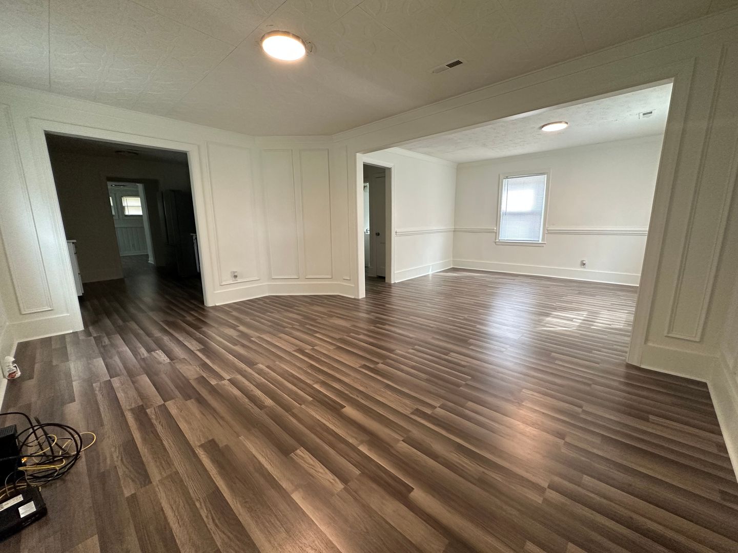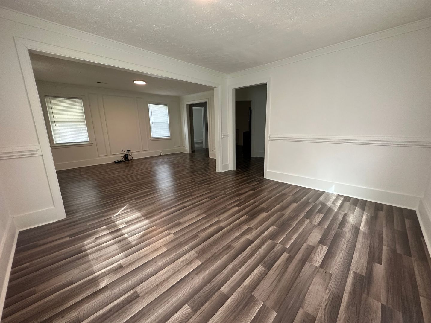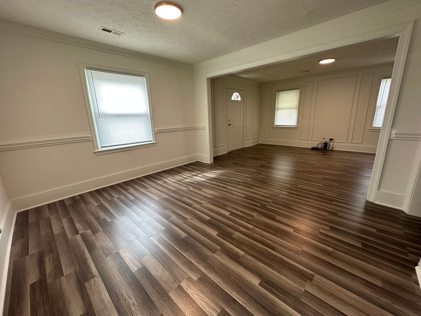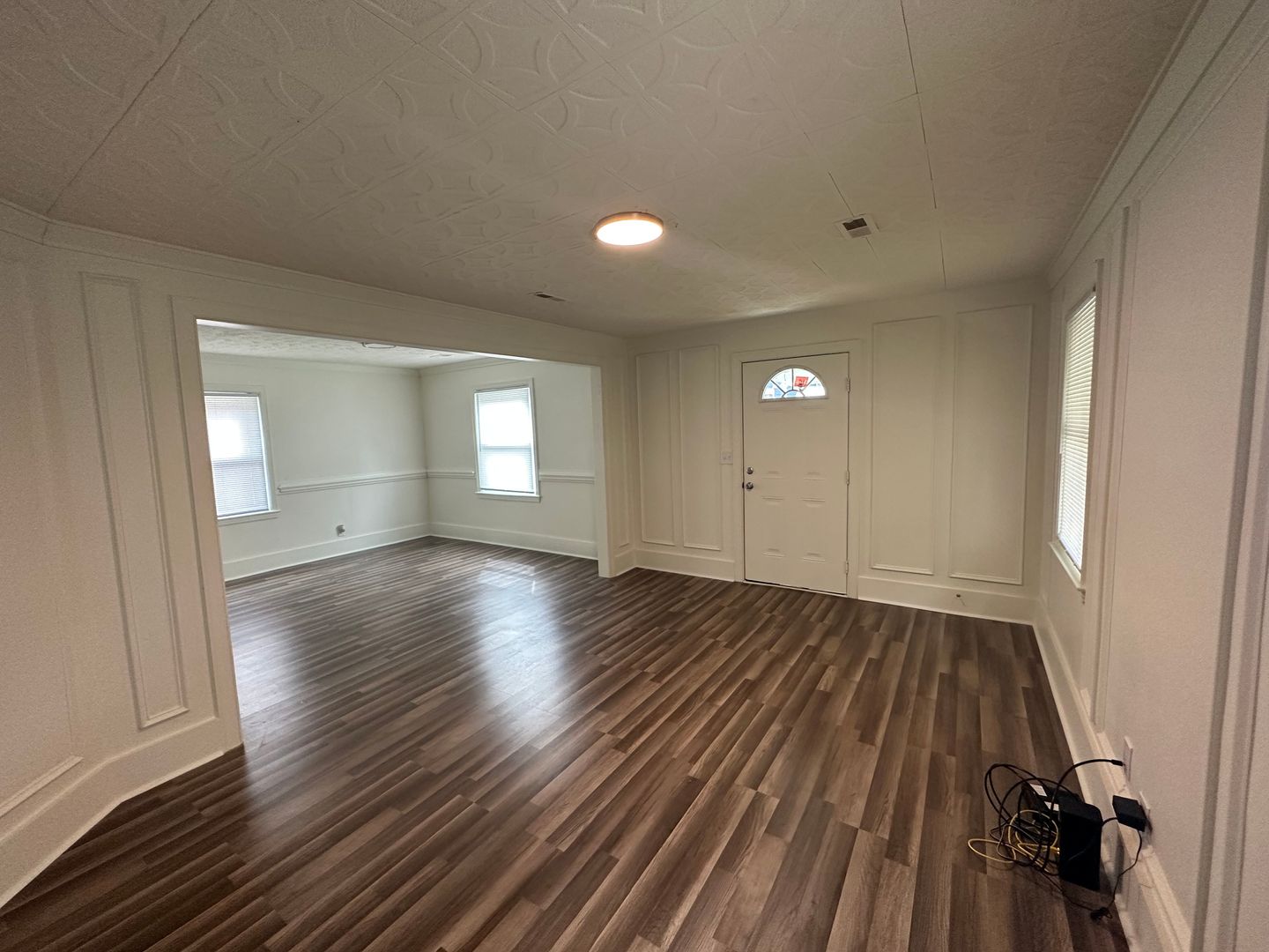 Welcome to 1814 Newark Avenue, a charming residence nestled in the heart of Fayetteville, NC. This newly renovated home boasts three spacious bedrooms and two full bathrooms, providing ample space for comfortable living. The covered front porch provides a perfect spot for relaxation and enjoying the outdoors. The luxury vinyl plank flooring flowing throughout the home adds a touch of elegance. A living room, adorned with wainscot paneling, exudes a warm and inviting atmosphere. The marble kitchen countertops further enhance the luxurious feel of the home while the tile back splash and stainless appliances in the kitchen offer a modern, sleek aesthetic. The formal dining room is perfect for entertaining. The home is also equipped with a heat pump for heating ¢tral A/C, W/D hookups for your convenience, some window treatments and smoke alarms.