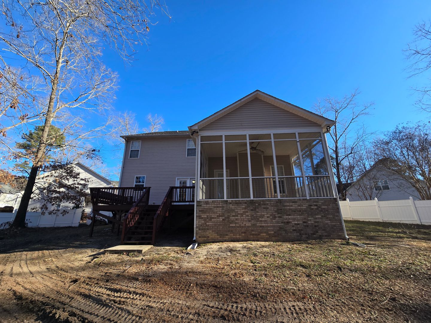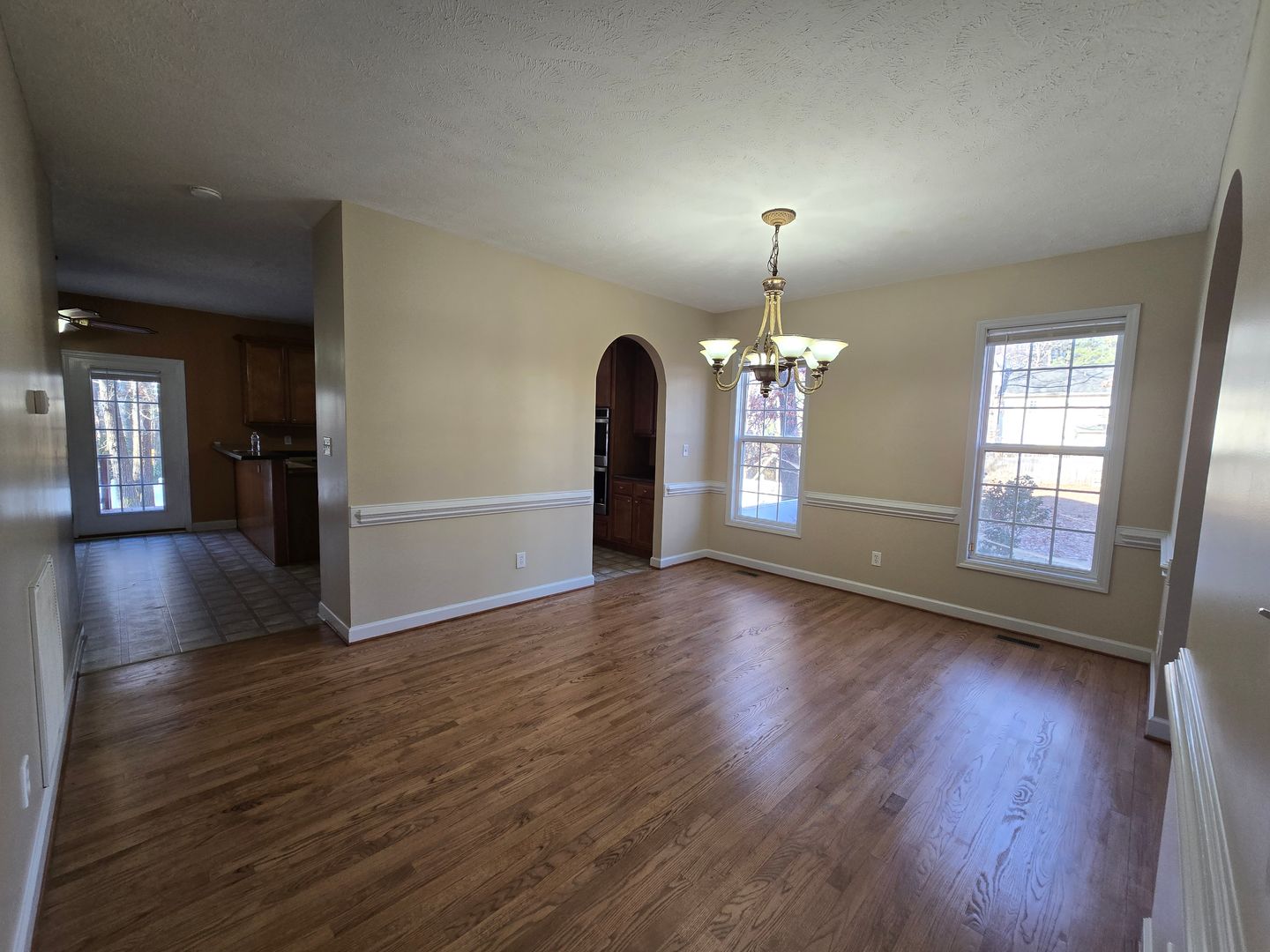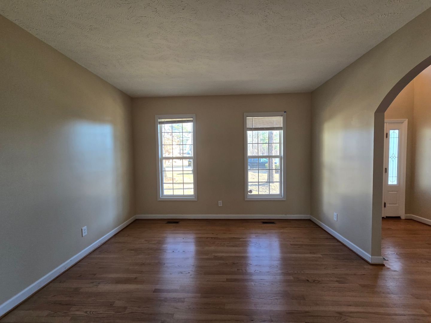 Welcome to this stunning two-story home located in Harnett County with a large covered front porch. Beautiful hardwoods flow throughout most of the downstairs. The living room is cozy and inviting with a wood-burning fireplace. The kitchen is a chef's dream, complete with a pantry and stainless appliances such as a dishwasher, range, refrigerator, and microwave. It also features an eat-in area for casual dining, while a formal dining room is available for more formal occasions. This home also boasts three spacious bedrooms, all with large closets, and two full bathrooms, including a primary suite with a jetted tub and separate shower. The finished bonus room is perfect for a home office or playroom. There is a laundry room with a washer and dryer (NOT WARRANTED) for your convenience. Outside, you'll find a white vinyl privacy fenced backyard with a screened-in porch and a back deck, perfect for outdoor entertaining. A wired workshop also provides space for hobbies or storage. The home also includes a double car garage and a heat pump for heating and central A/C. Don't miss out on this gem in Spring Lake, NC.