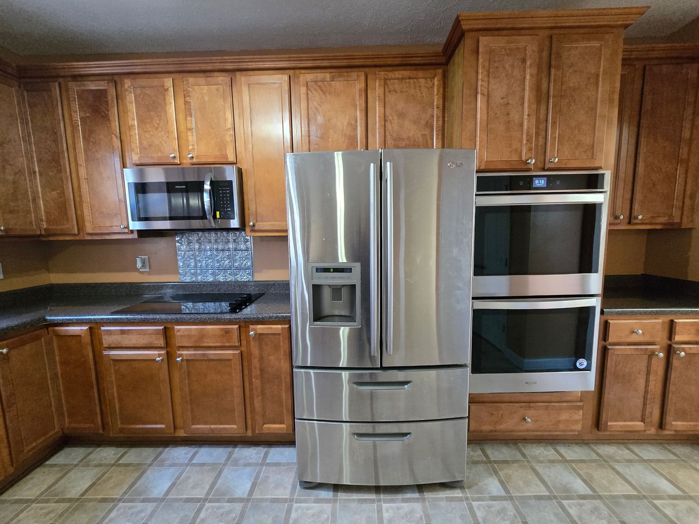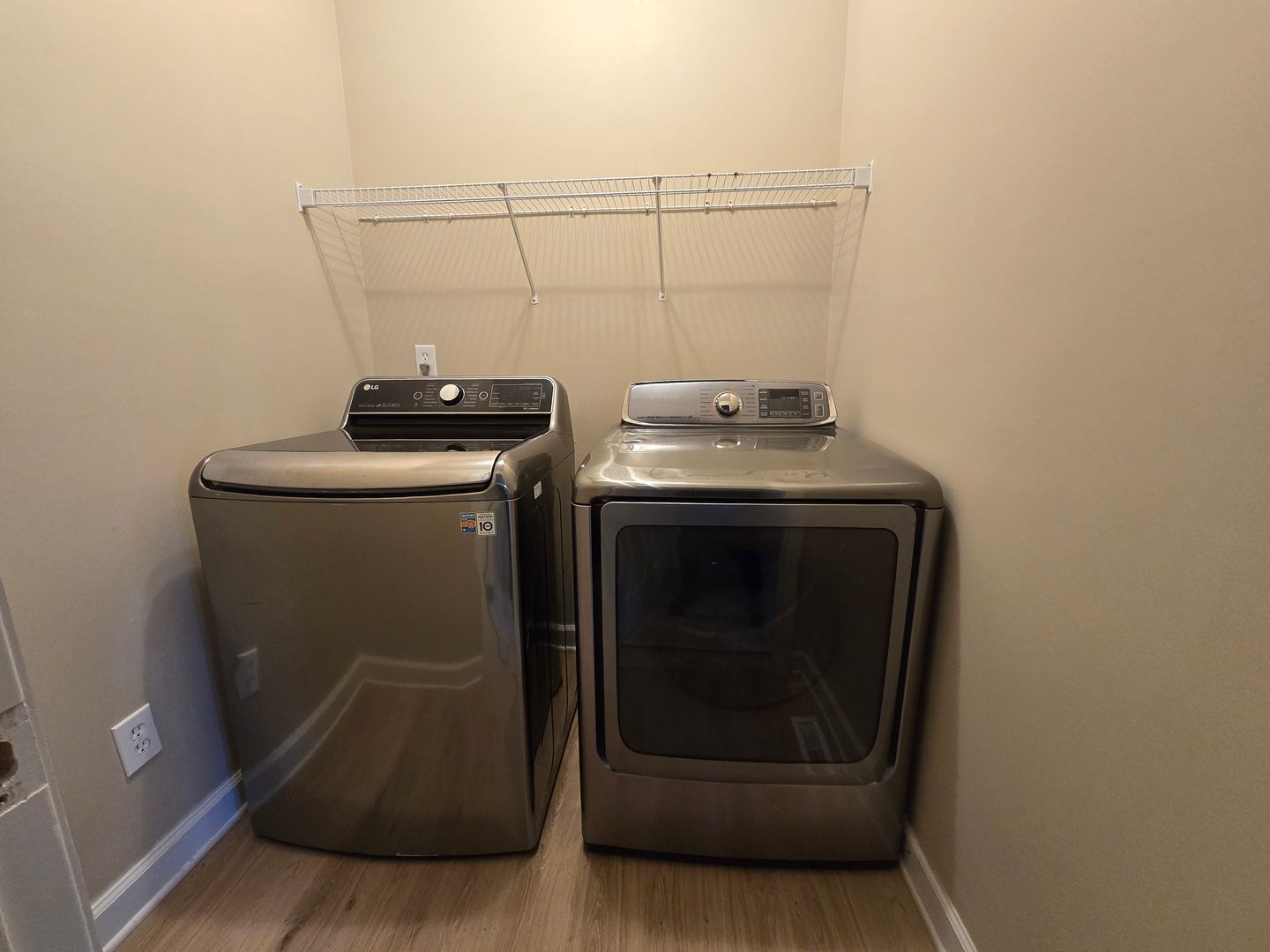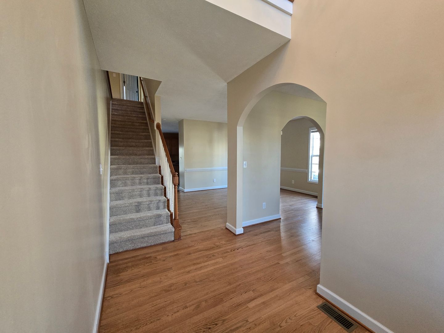 Welcome to this stunning two-story home located in Harnett County with a large covered front porch. Beautiful hardwoods flow throughout most of the downstairs. The living room is cozy and inviting with a wood-burning fireplace. The kitchen is a chef's dream, complete with a pantry and stainless appliances such as a dishwasher, range, refrigerator, and microwave. It also features an eat-in area for casual dining, while a formal dining room is available for more formal occasions. This home also boasts three spacious bedrooms, all with large closets, and two full bathrooms, including a primary suite with a jetted tub and separate shower. The finished bonus room is perfect for a home office or playroom. There is a laundry room with a washer and dryer (NOT WARRANTED) for your convenience. Outside, you'll find a white vinyl privacy fenced backyard with a screened-in porch and a back deck, perfect for outdoor entertaining. A wired workshop also provides space for hobbies or storage. The home also includes a double car garage and a heat pump for heating and central A/C. Don't miss out on this gem in Spring Lake, NC.