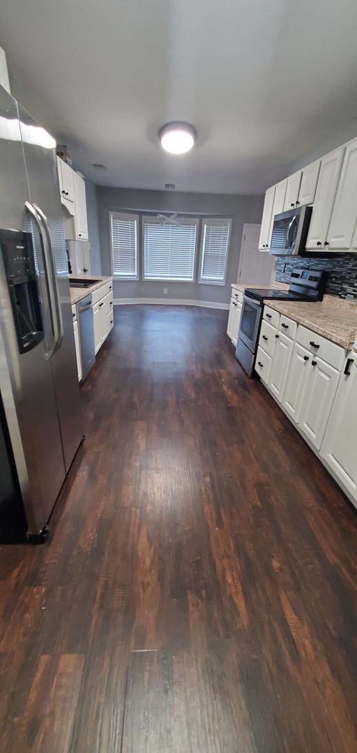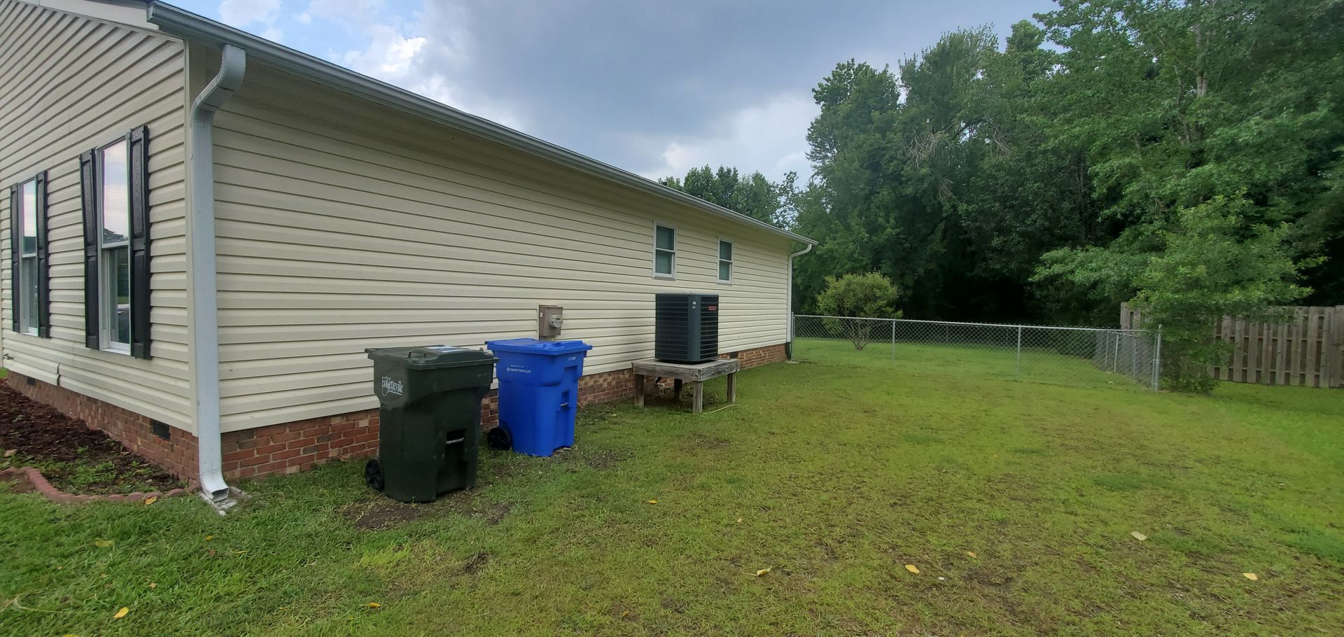 Welcome to 1401 Carnsmore in the vibrant community of Arran Lakes, Fayetteville, NC. This charming 3-bedroom, 2-bathroom home offers a week free and is brimming with amenities designed for your comfort and convenience. The home features a cozy fireplace, perfect for those chilly evenings, and a patio for outdoor relaxation. The kitchen is a chef's dream with stainless steel appliances, a range, a wine fridge, and a tile backsplash. It also offers an eat-in area for casual dining. The primary bedroom boasts a walk-in closet, providing ample storage space. The home also includes a laundry room, central A/C, and a heat pump for year-round comfort. Ceiling fans add an extra touch of comfort to the bedrooms. The property also features a covered front porch, perfect for enjoying a morning coffee or an evening breeze. The backyard is enclosed with a chain-link fence, offering a private space for outdoor activities. With all these features, 1401 Carnsmore is more than just a house, it's a home.